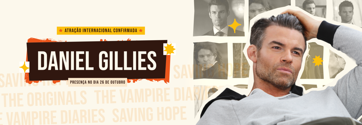 O ator canadense Daniel Gillies, conhecido por interpretar o eterno Elijah Mikaelson, foi confirmado como convidado especial do evento geek Imagineland: On the Road. O evento acontece nos dias 25 e 26 de outubro em Campina Grande (PB), e o ator estará presente no último dia de atividades.